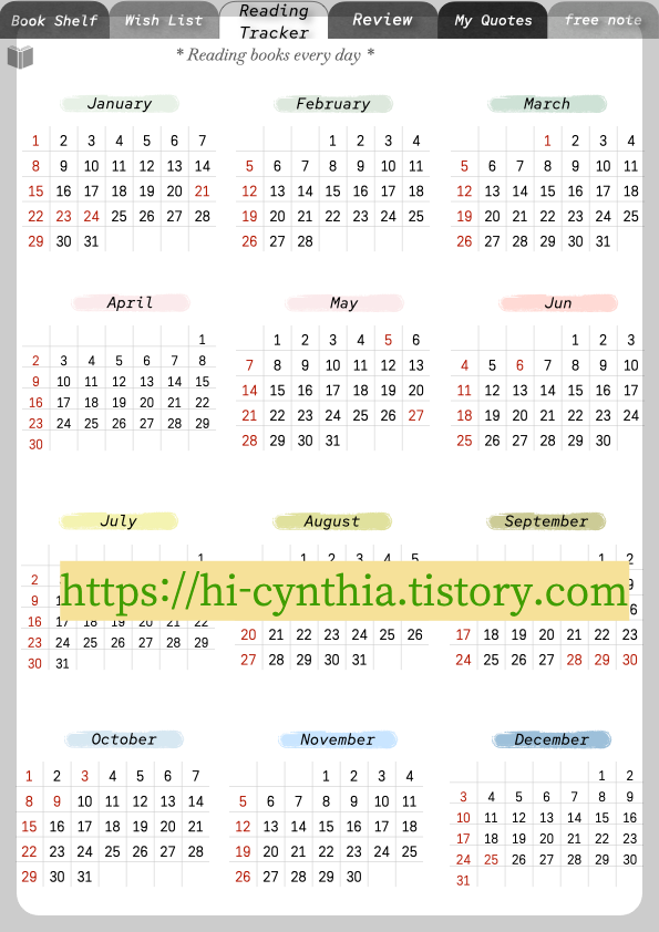 매일매일 내가 책을 읽었는지, 안 읽었는지 체크할 수 있는 독서 추적기다 ㅋㅋㅋ